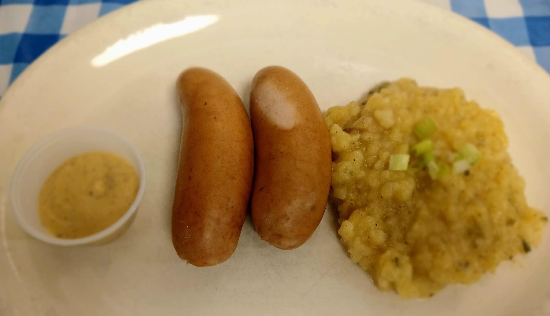 (simmered German Hot Dog) served with Bavarian Potato Salad & Brauhaus mustard