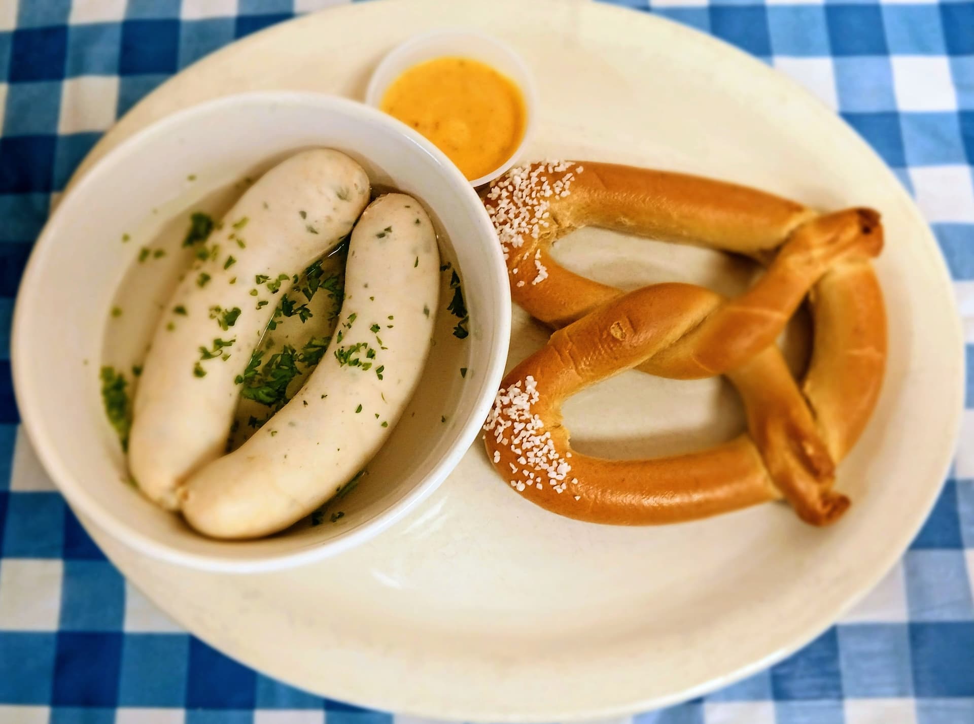 (the Munich one simmered) served with Brezel & homemade sweet mustard