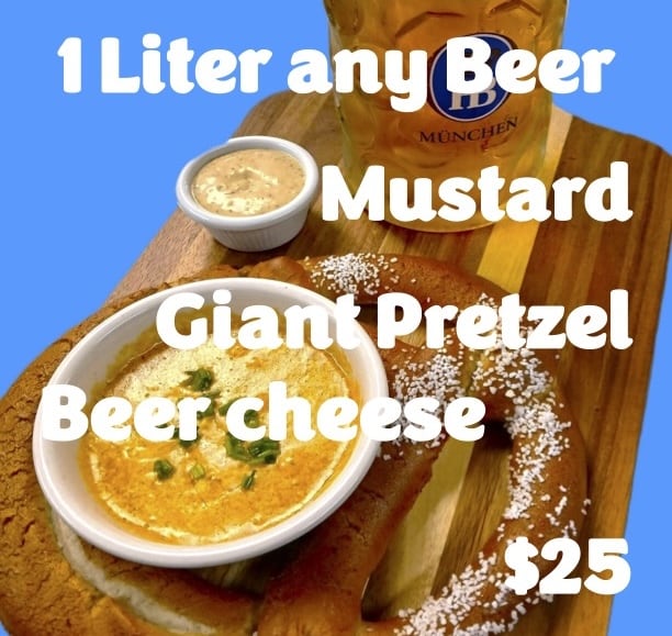 with melted beer cheese, mustard & 1 Liter Beer of your choice